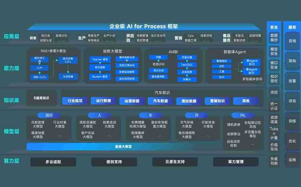 端到端的一站式AI工作空间深度融合了从企业战略规划到日常经营的全流程业务板块,,,,定向解决车企内部领域多、、、、部门多、、、链条长、、场景碎片化等难题,,支持车企快速构建以AI为核心的生产力写作体系,,,实现任务执行与AI能力的无缝集成与交互